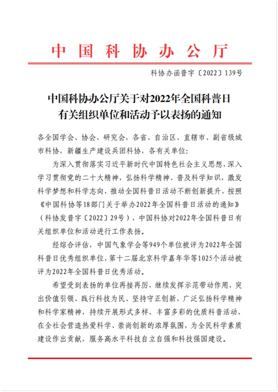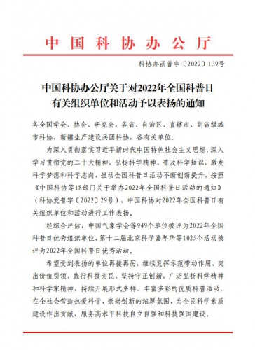 中国地质学会荣获2022年全国科普日活动优秀组织单位