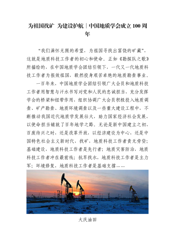 ? 为祖国找矿为建设护航︱中国地质学会成立100周年 2022-10-08