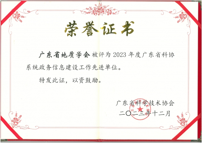 ? 广东省地质学会连续4年获评省科协系统政务信息建设工作先进单位 2023-12-15