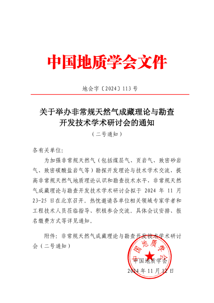 ? 关于举办非常规天然气成藏理论与勘查开发技术学术研讨会的通知(二号通知) 2024-11-13